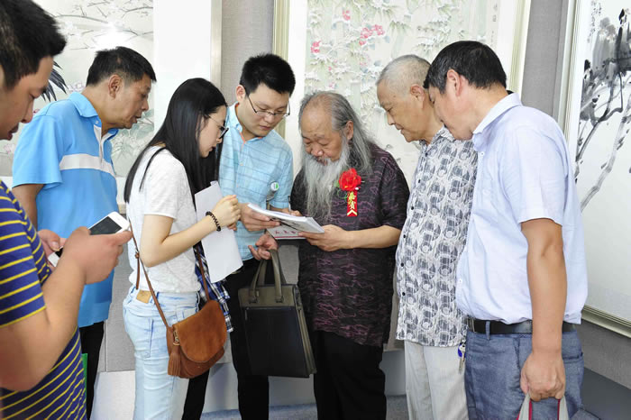 徐培晨会长前排(中)、常务副会长赵治平(右二)、副会长姚亮(右一)与现场工作人员合影。